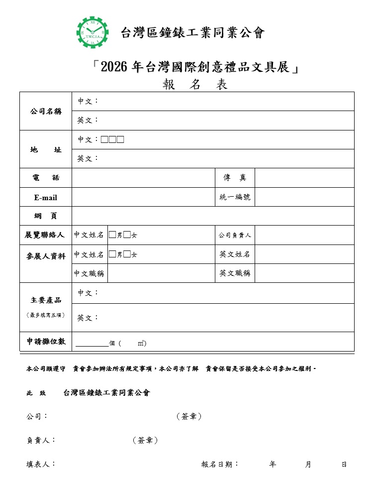26年 04月台灣國際創意禮品文具展 報名表下載