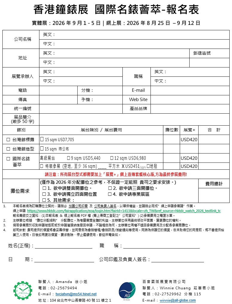 2026年香港鐘錶展報名表下載